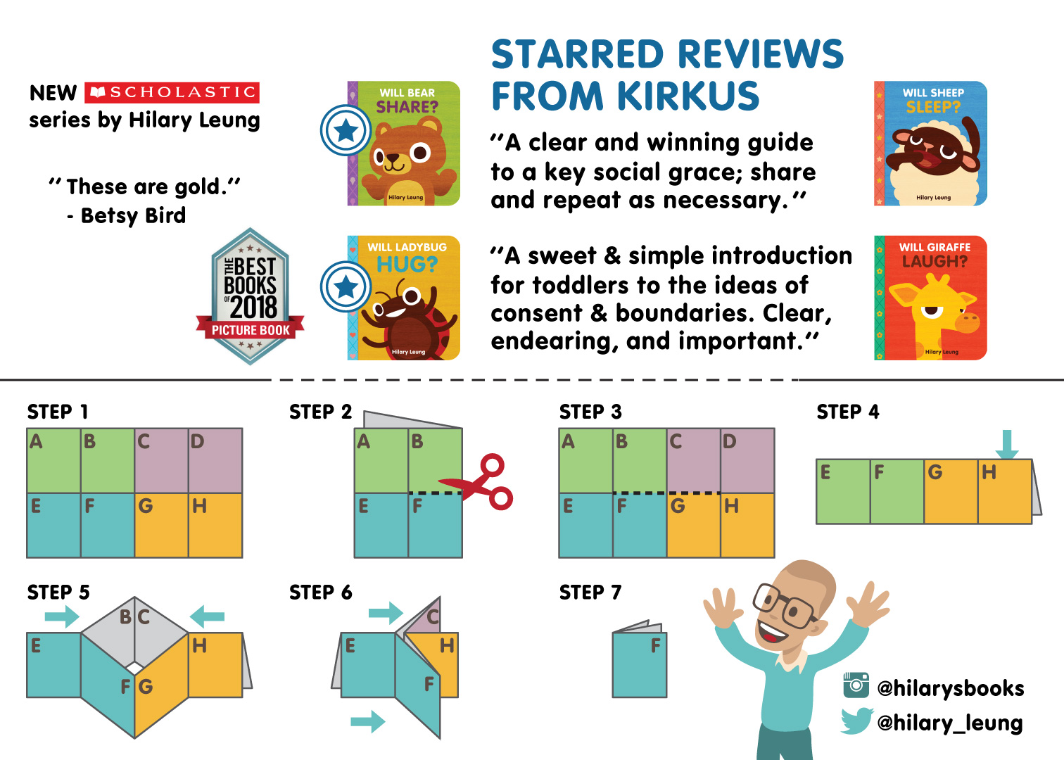 This story was printed and distributed as an origami postcard at the SCBWI Conference in New York. It was met with much joy & delight by the book-loving audience. Please feel free to download, print, and build your own copy below!